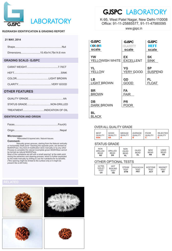 For more details about Grading Report of Rudraksha , visit GJSPC Laboratory.